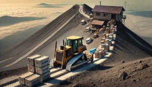 標高差二千メートルを越えるこの山頂の「当たり前」は、すべてこの鉄の獣のキャタピラに載って運ばれてくる。