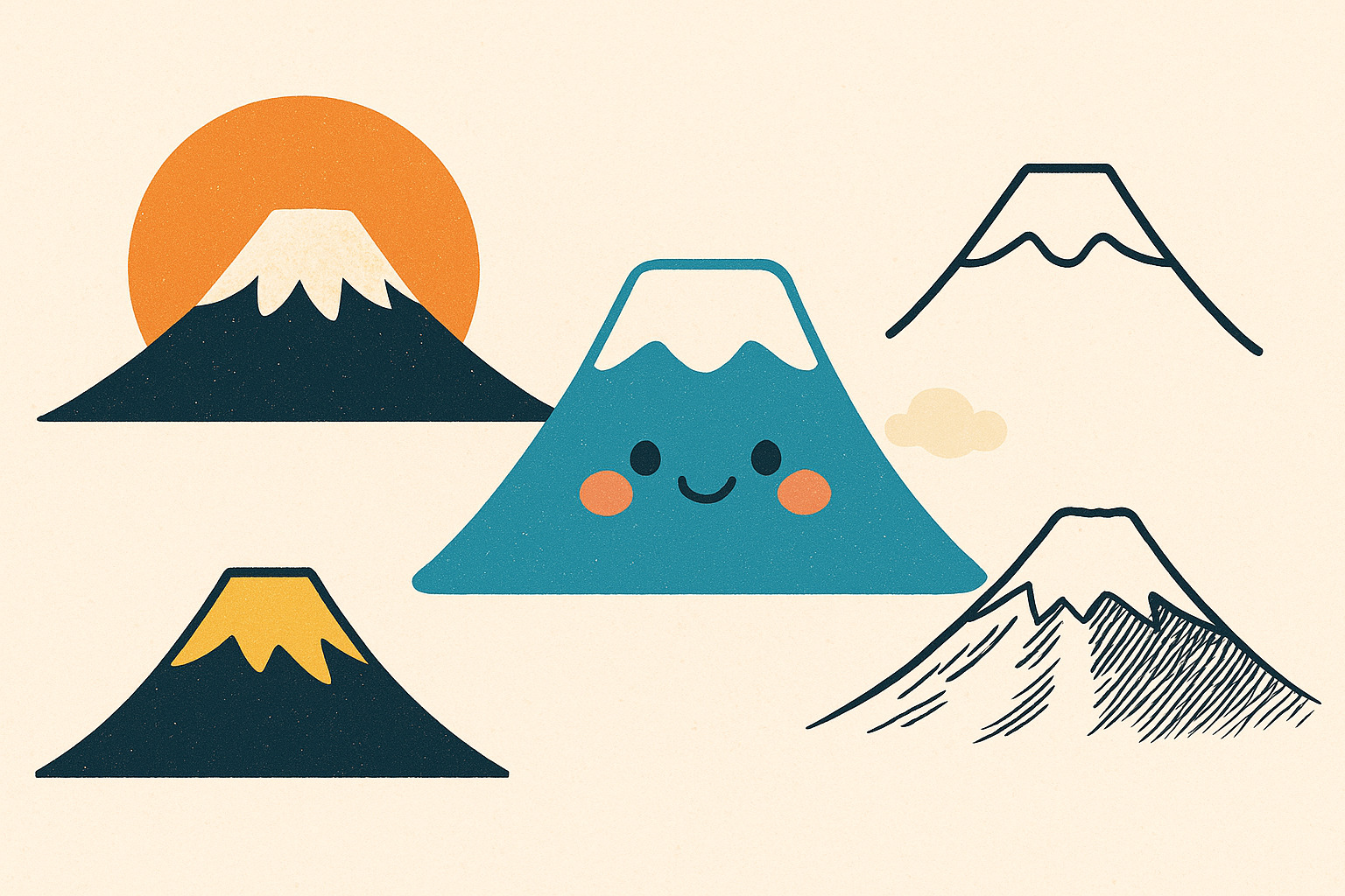 同じ「富士山のイラスト」でも、描く人のセンスや気分によってまるで別の山になる。