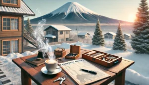 冬の朝、富士河口湖町の高台にある温泉付き別荘を訪れた。