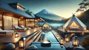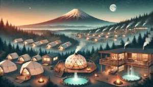 富士山麓の温泉付きグランピングは、スタイルが違えば体験もまったく変わる。