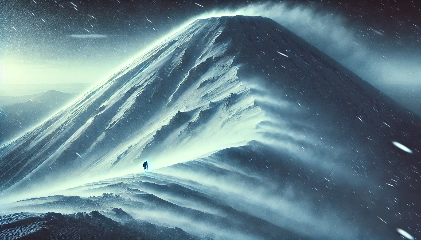 強風で姿勢が乱れる→凍結で足が滑る→低温で指が動かない→視界が薄くて道が曖昧になる。