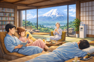 ふじやま温泉は、ただお風呂に入るだけの場所を探している人より、「せっかく富士山の近くまで来たなら、少しゆっくりしたい」と思っている人にかなり合う施設です。温泉だけでなく、岩盤浴、休憩室、食事処までそろっていて、施設側も「一日ゆったり」過ごせることをしっかり打ち出しています。実際、情報を見ていると、この施設は“短時間で消費する”より、“少し長く味わう”ほうが楽しそうだなと感じます。