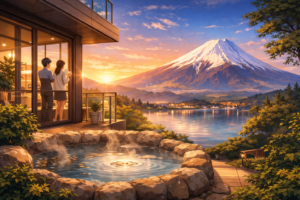 朝、窓の外に富士がいる。焚き火の匂いを肩に残したまま温泉へ向かう。テレビで見た店の味をたしかめた帰り、湯けむりの向こうに、夕暮れの稜線を見つける。そんな時間は、ただの観光では終わりません。富士山は、遠くから眺めれば名峰ですが、近くで過ごすほど、人の心を映す鏡のように表情を変えるからです。霧に隠れる日は迷いに似て、澄み切った朝は、不思議なほど人の気持ちをまっすぐにしてくれます。