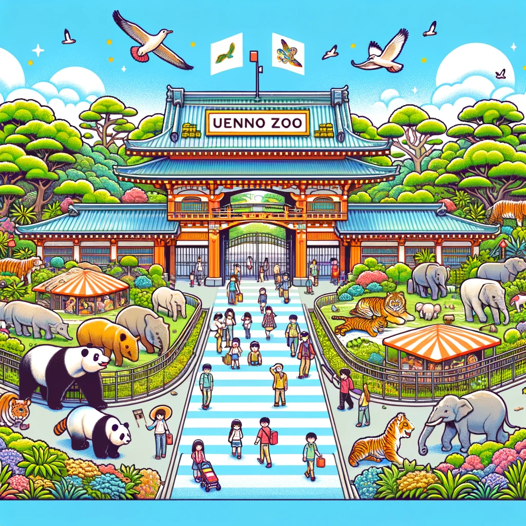 DALL·E 2024-03-03 21.26.41 – A vibrant and detailed illustration of Ueno Zoo, featuring a variety of animals such as pandas, elephants, and tigers in their habitats, visitors enjo ※広告を掲載しています ※広告を掲載しています X Facebook はてブ LINE コピー 2024.03.03